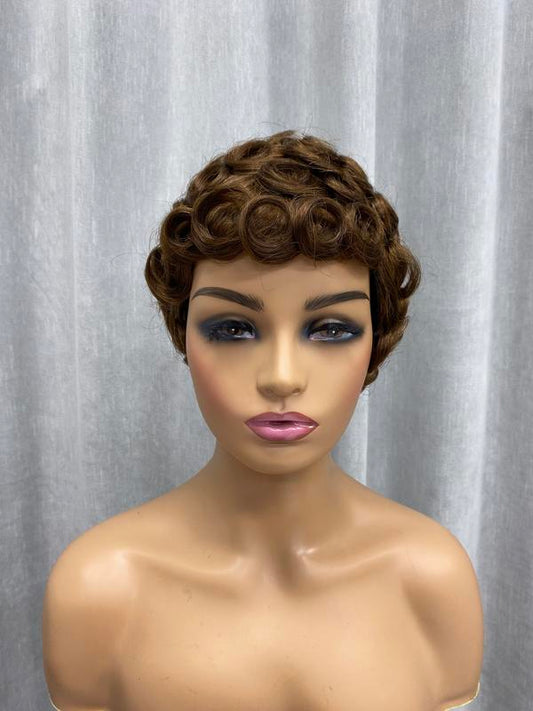 ShowReal 025 Short Pixie Cut Egg Wavy Curly Bomb Black Colorful Mommy Wig Pin Curls Brizalian Virgin Human Hair Cute Style Wigs For Black Woman Daily Party Use