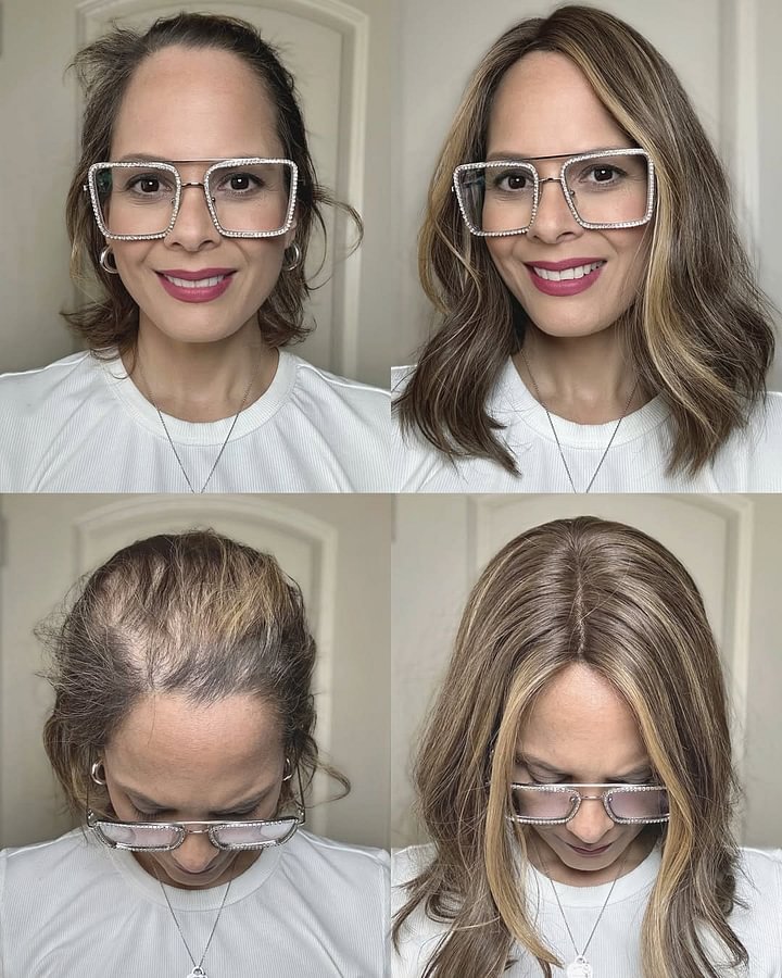 If you have thinning hair, graying hair, chemo-related hair loss, or poor hair quality on top, this product is your ideal solution. It blends seamlessly with your natural hair, ensuring no one will notice. The breathable single-layer base provides all-day comfort for any occasion. Embrace your beauty and confidence—you deserve it today!