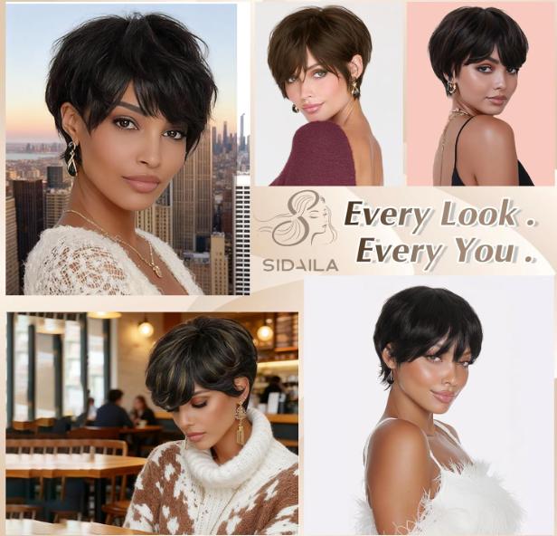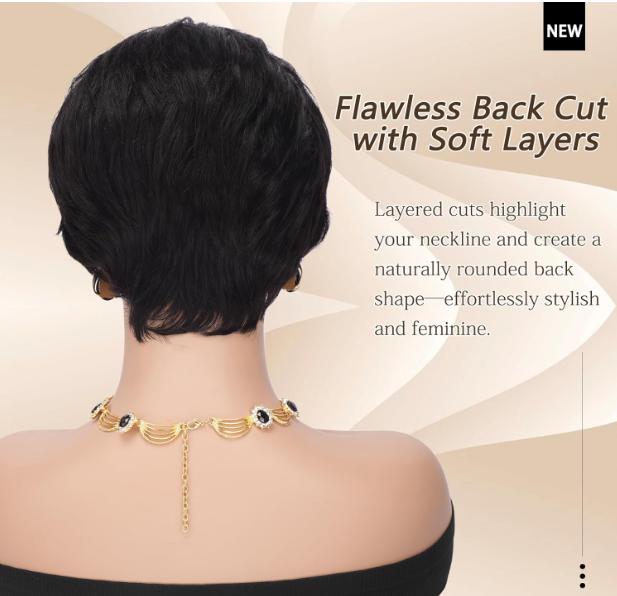 Short Pixie Cut Wig Brazilian Virgin Human Hair Black And Highlight Colorful Wig With Bangs Full Machine Ready To Go Glueless Wig dealsforyourdays