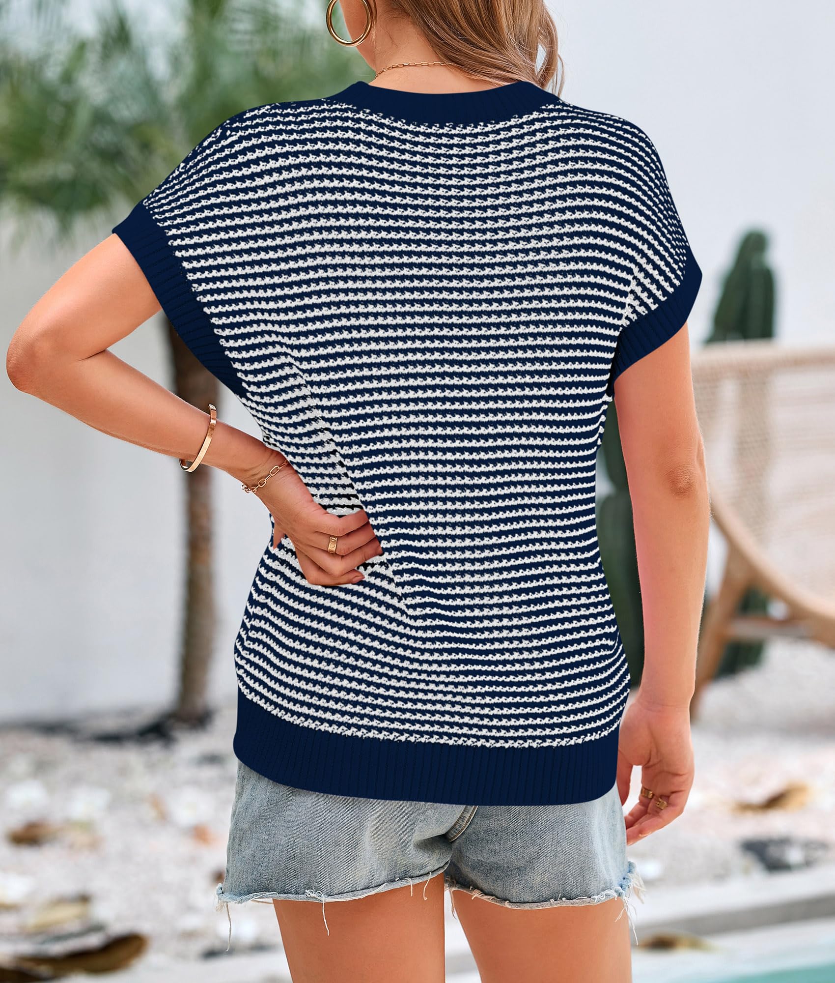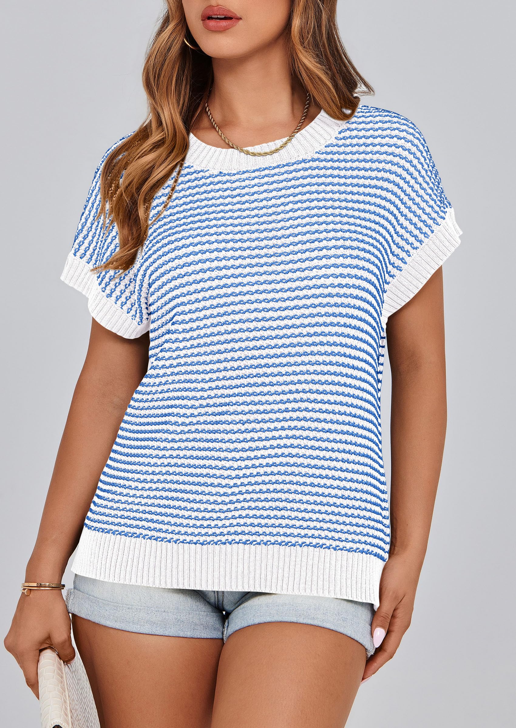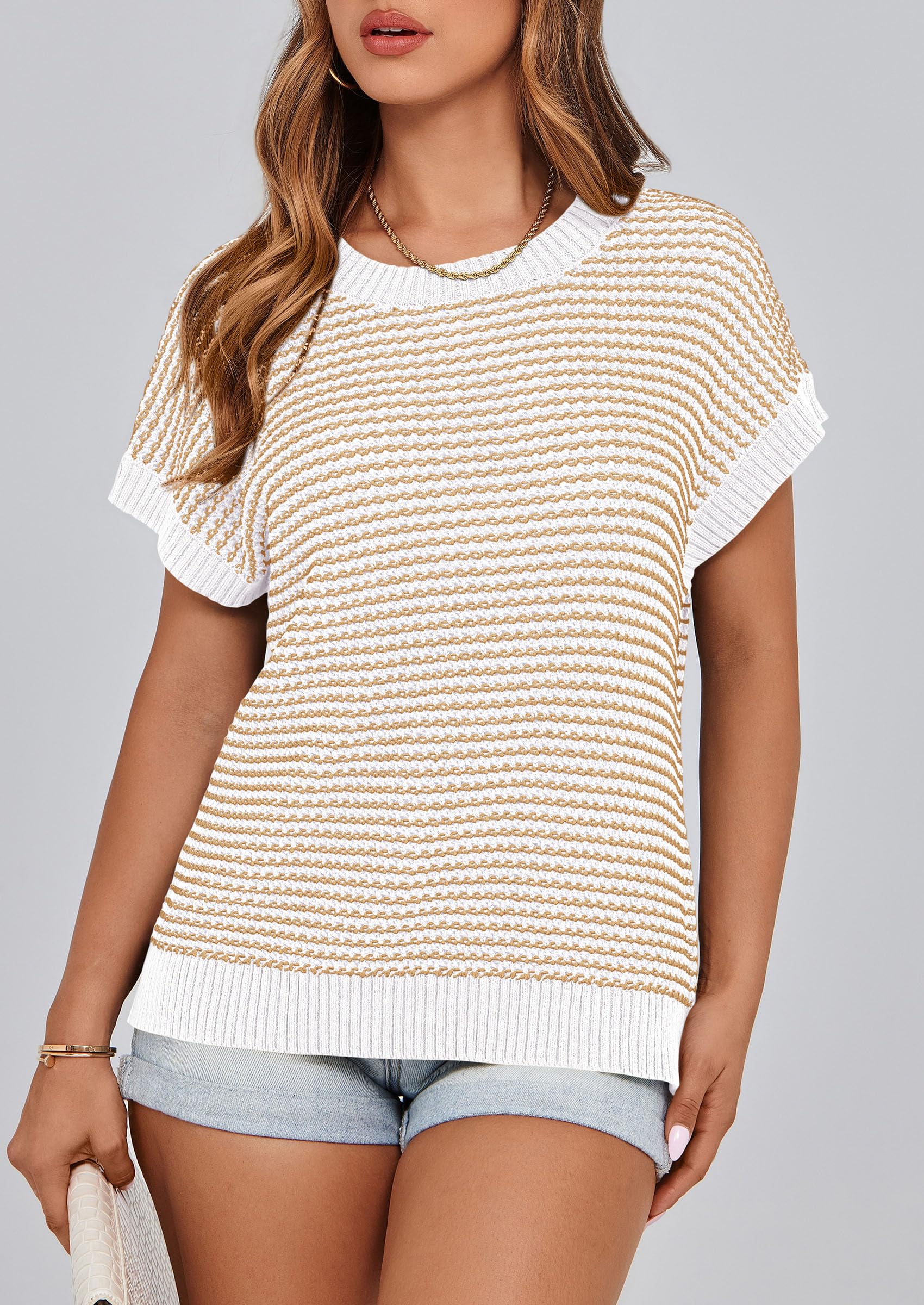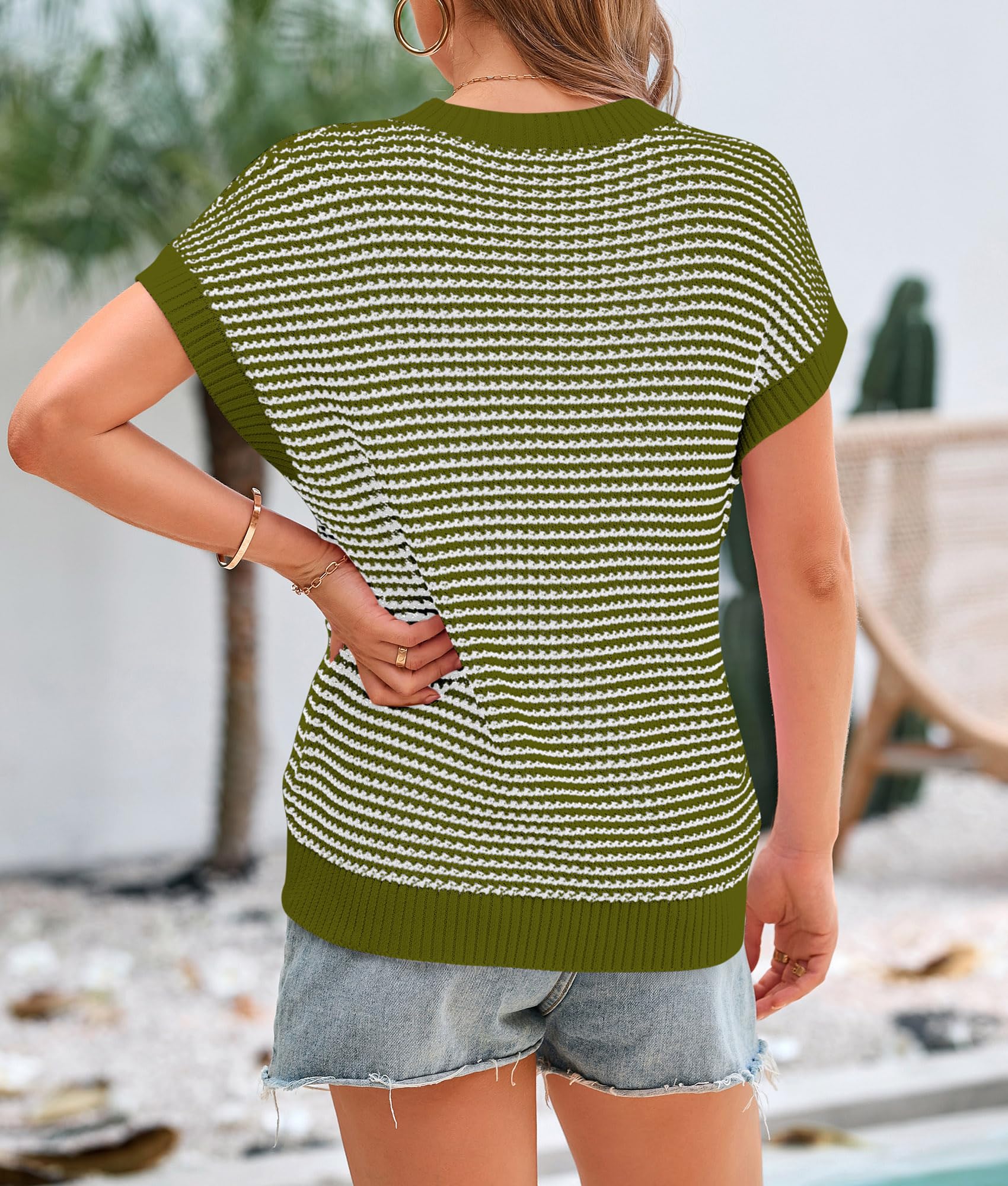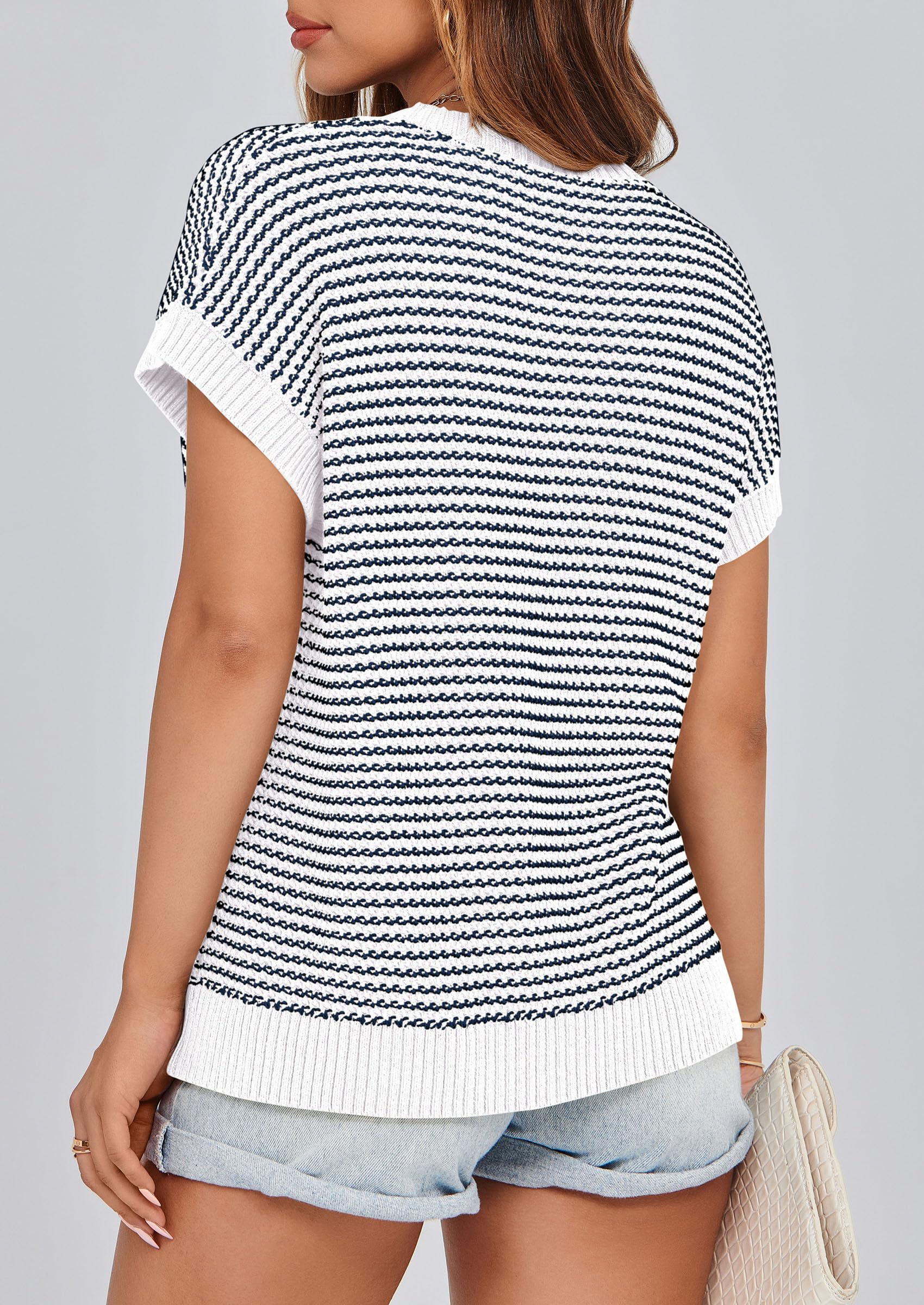PRETTYGARDEN Womens Short Sleeve Sweater Spring Summer 2025 Round Neck Striped Pullover Cap Sleeve Knit Sweater Vest Tops