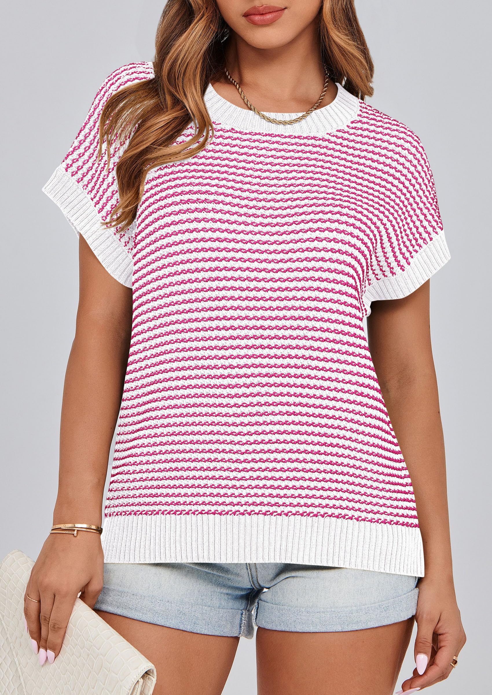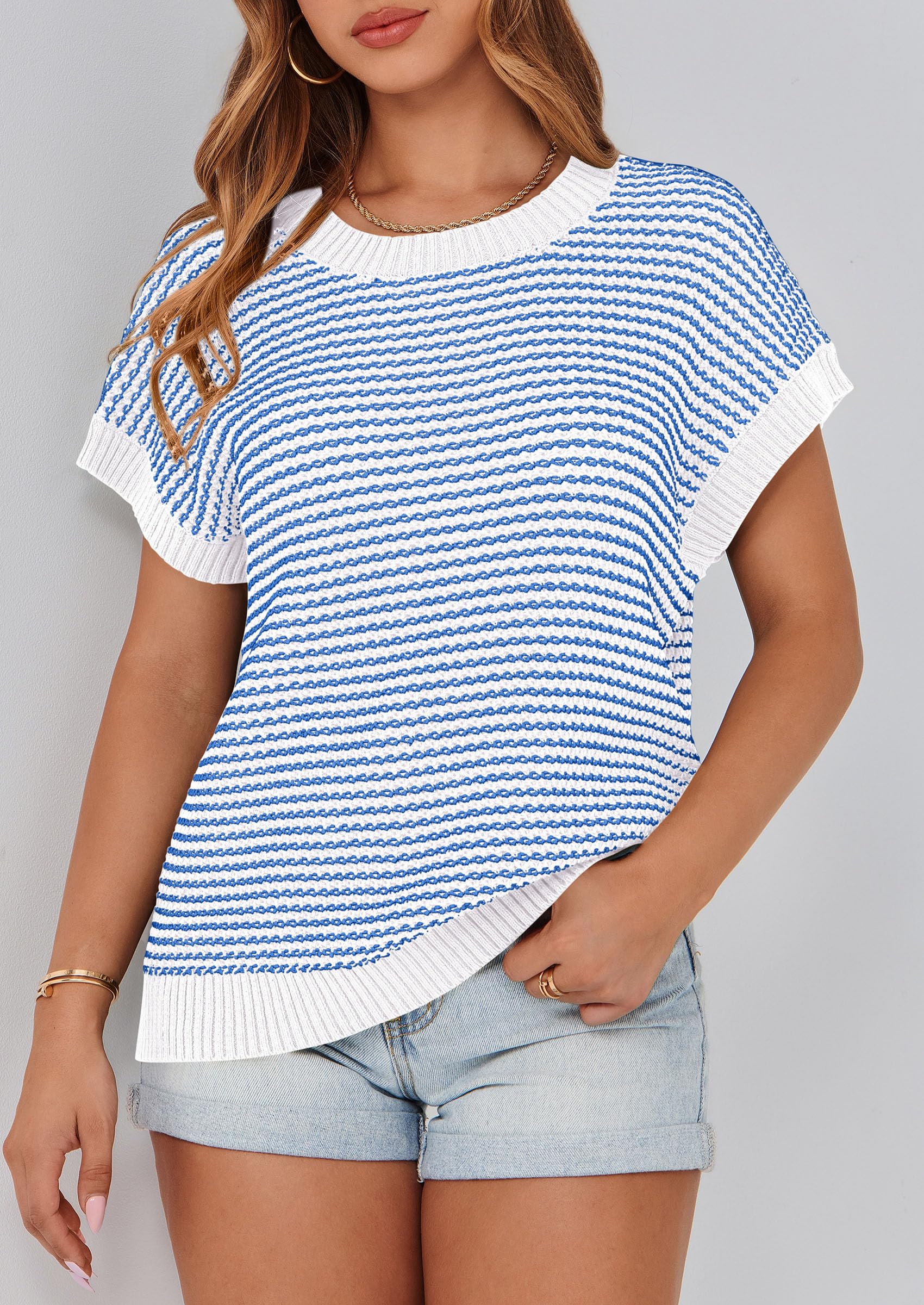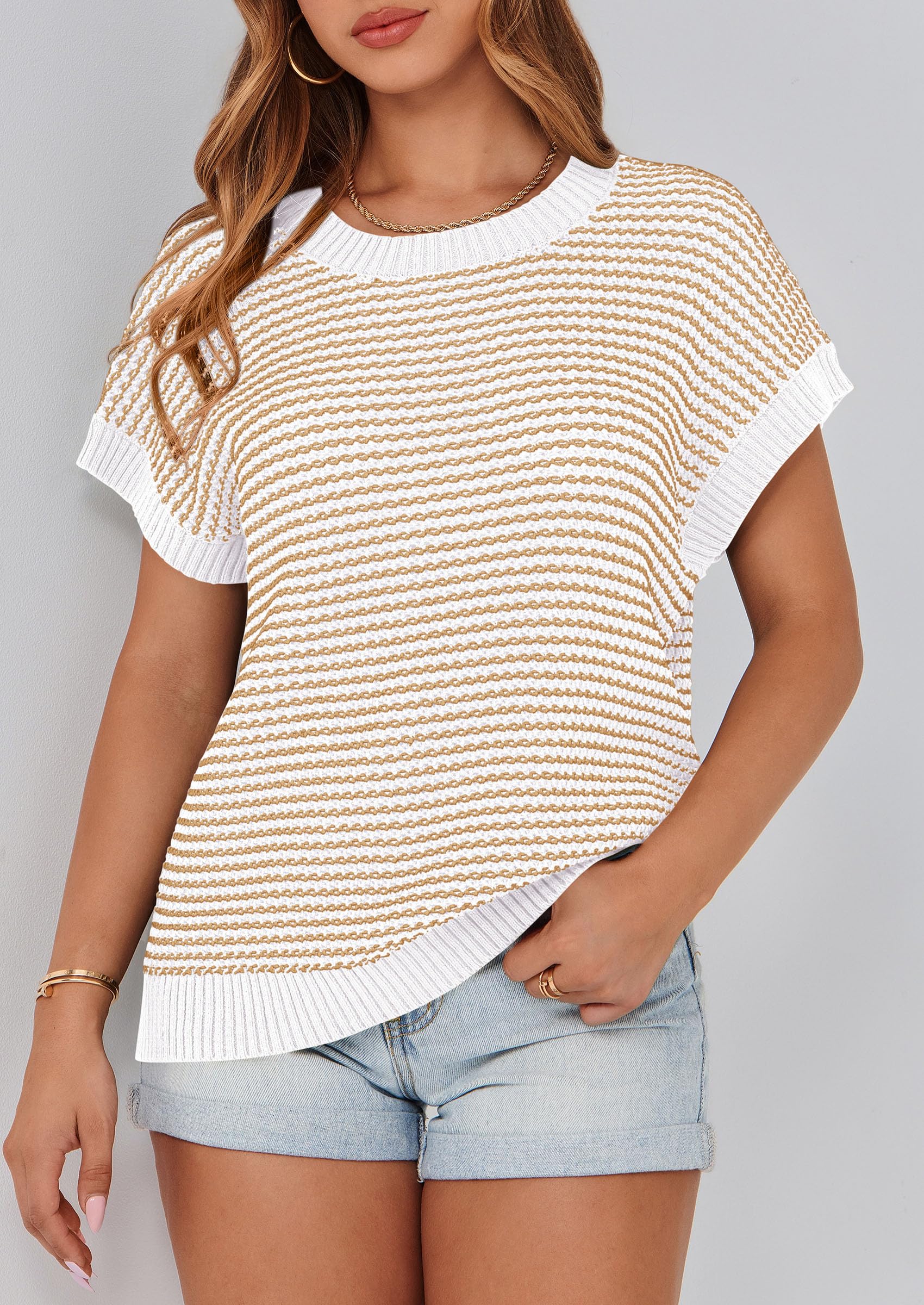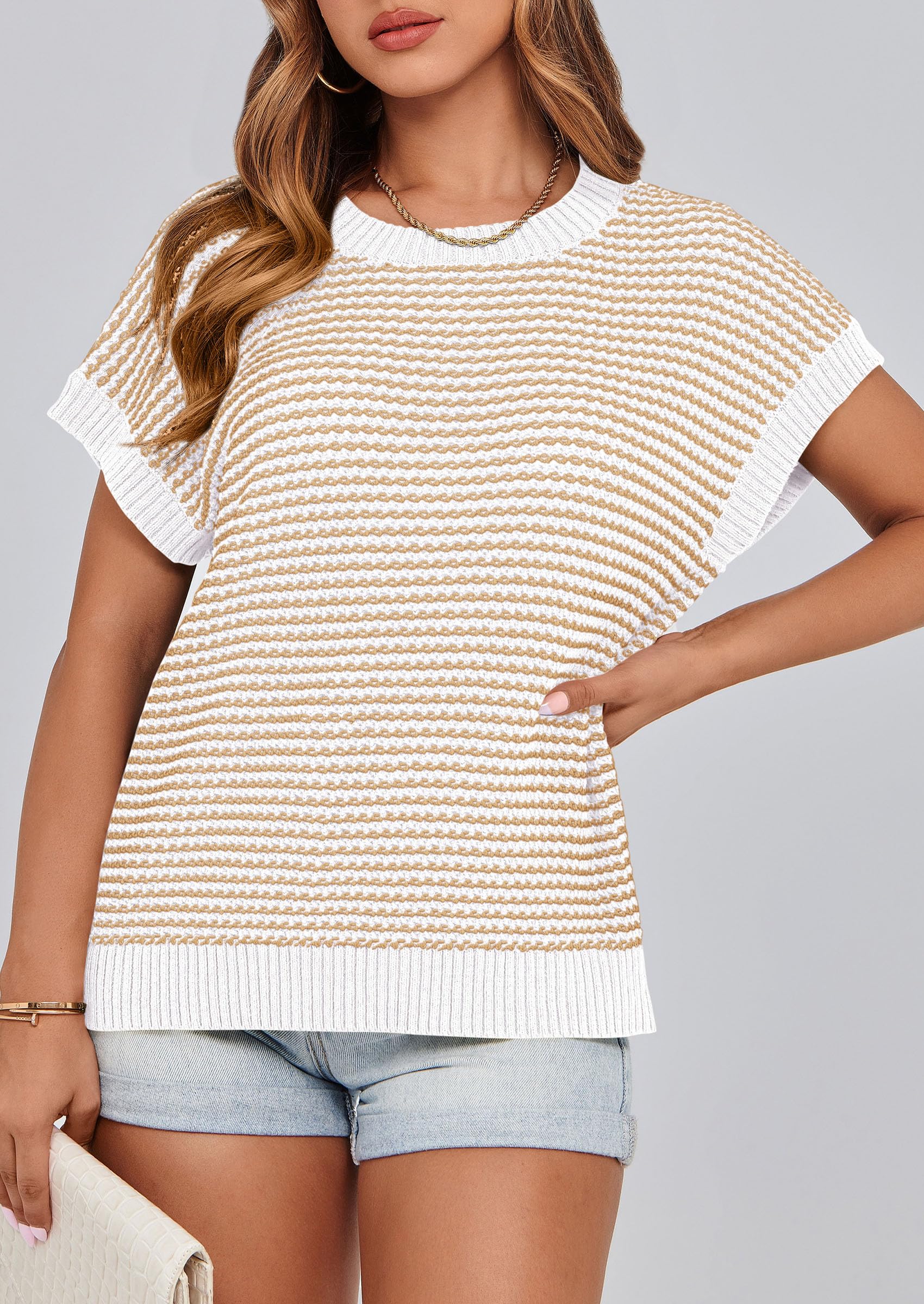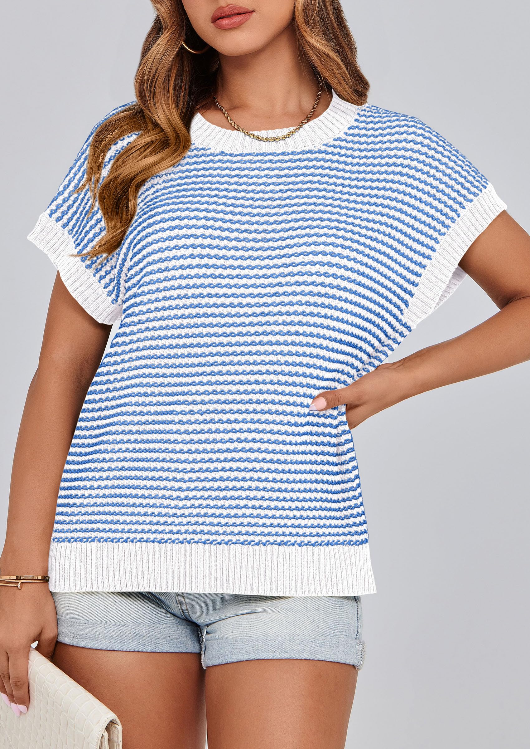 PRETTYGARDEN Womens Short Sleeve Sweater Spring Summer 2025 Round Neck Striped Pullover Cap Sleeve Knit Sweater Vest Tops