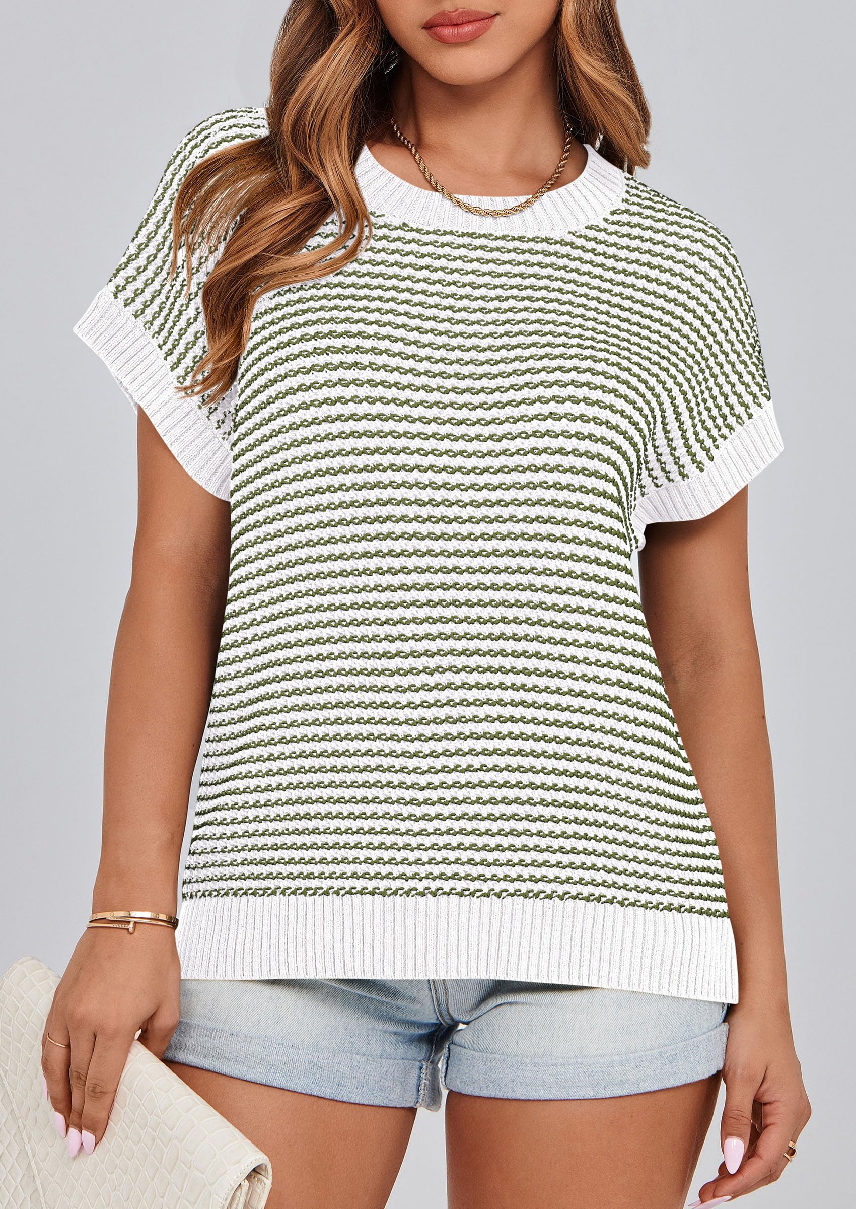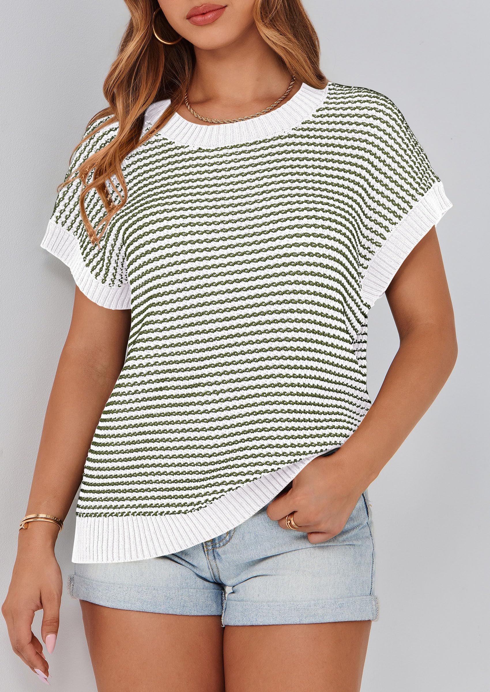 PRETTYGARDEN Short Sleeve Sweater for Women Cap Sleeve Striped Pullover Tops