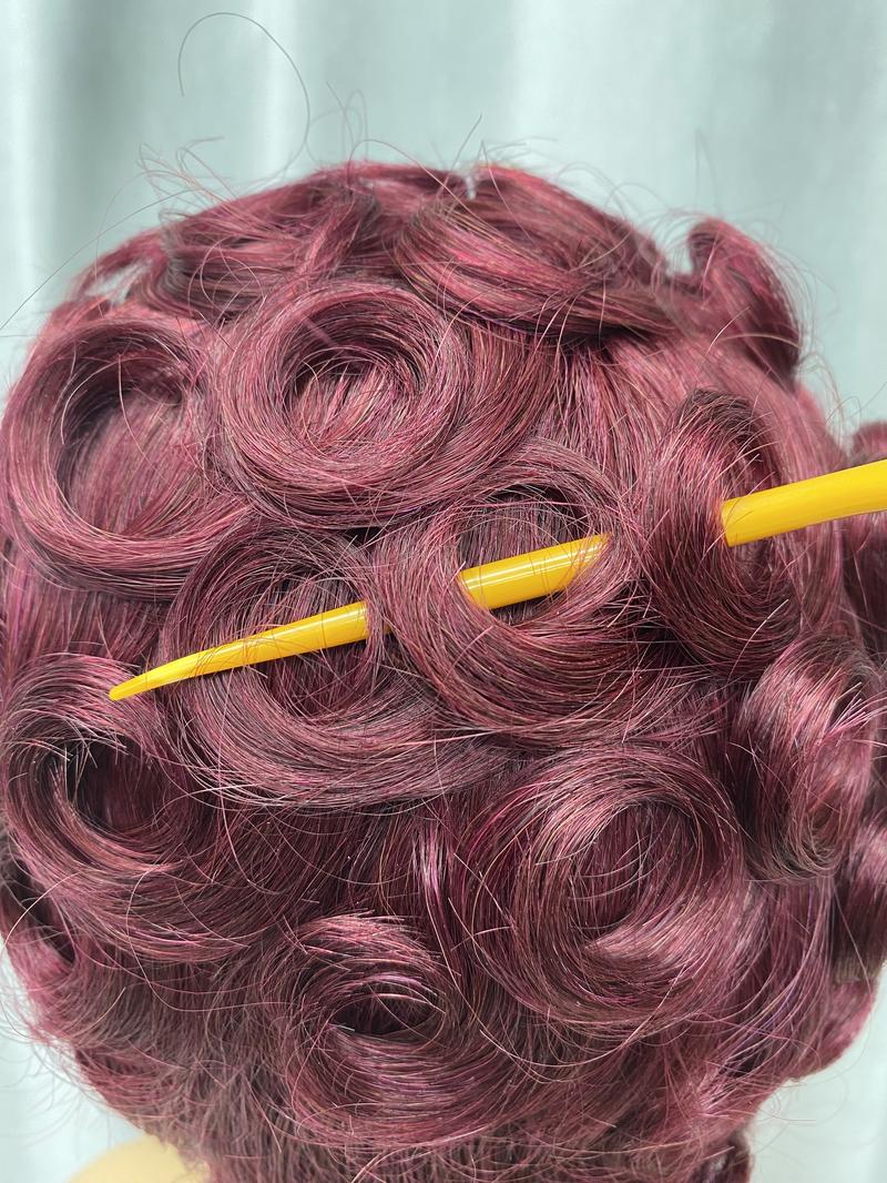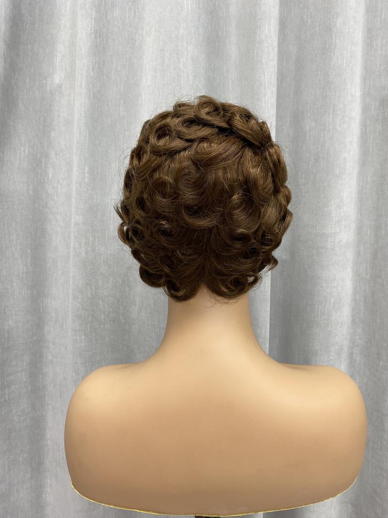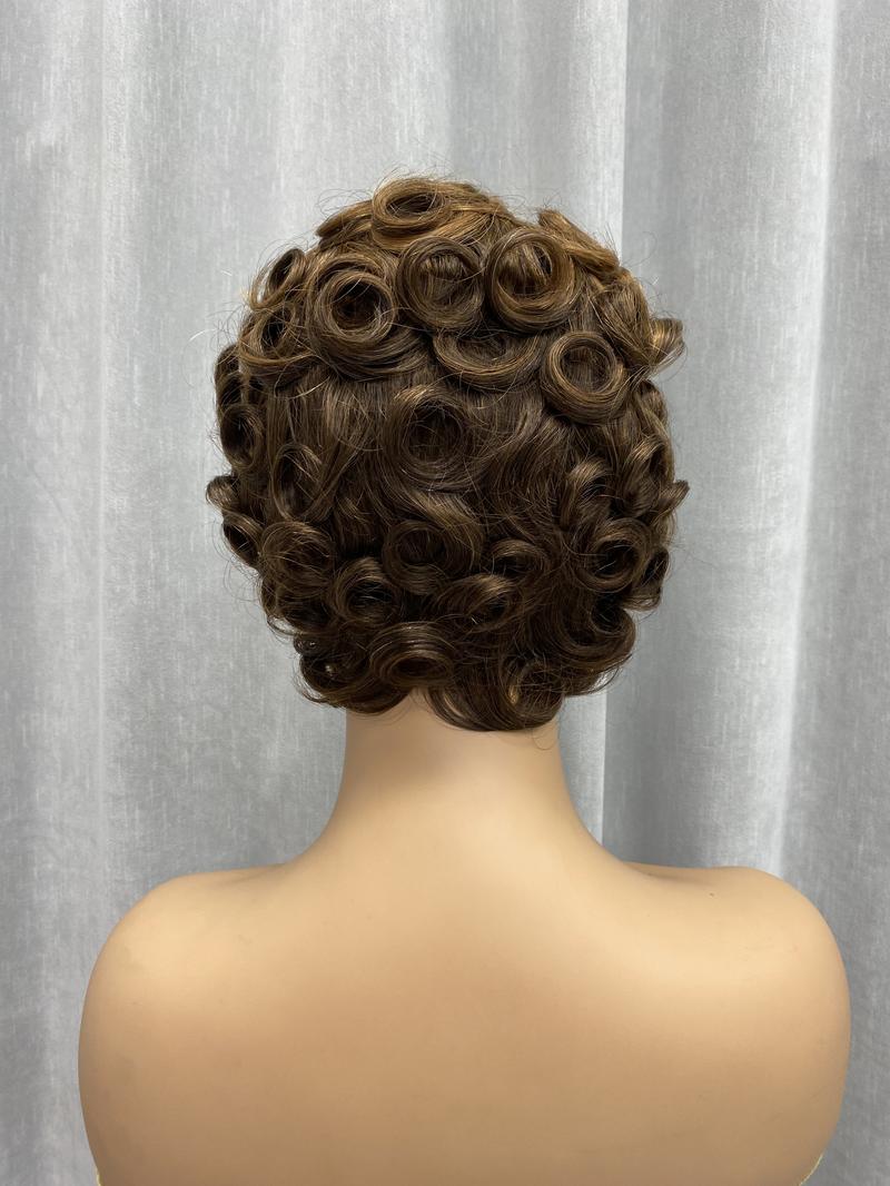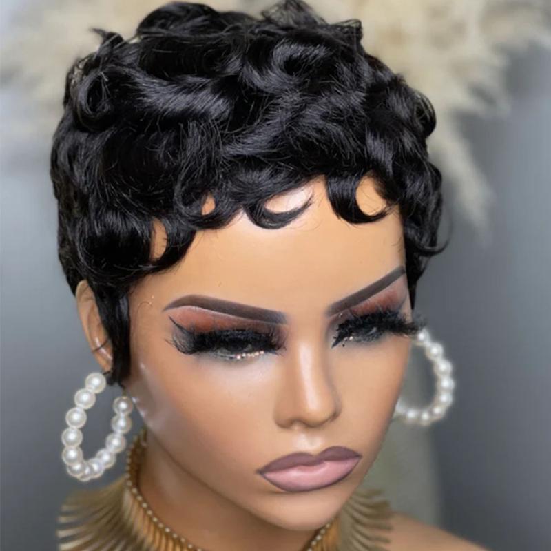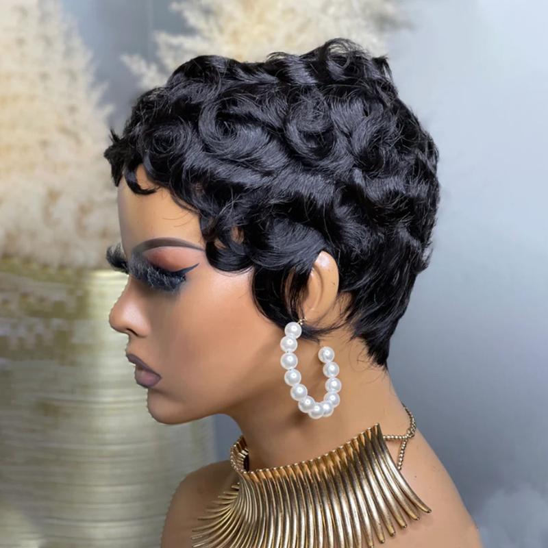 ShowReal 025 Short Pixie Cut Egg Wavy Curly Bomb Black Colorful Mommy Wig Pin Curls Brizalian Virgin Human Hair Cute Style Wigs For Black Woman Daily Party Use